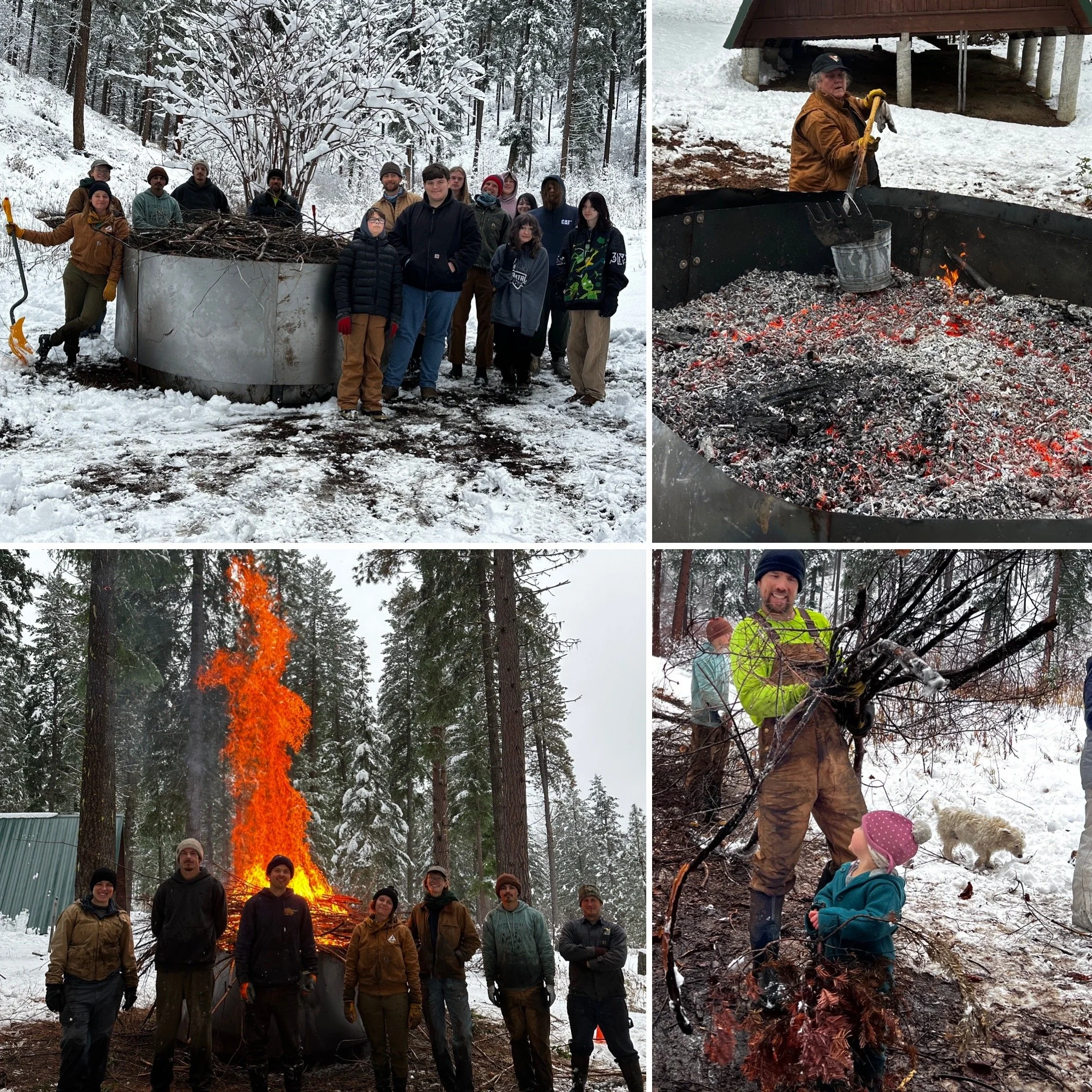 A last minute opportunity for biochar. Camp Camrec up the Little Chumstick had a mountain of slash needing to be processed and snow was threatening to fall. The PBA invited out the Leavenworth Discovery High School tob come learn about biochar and flame cap kilns. It was cold and wet but work got done and cocoa and hot dogs were consumed.